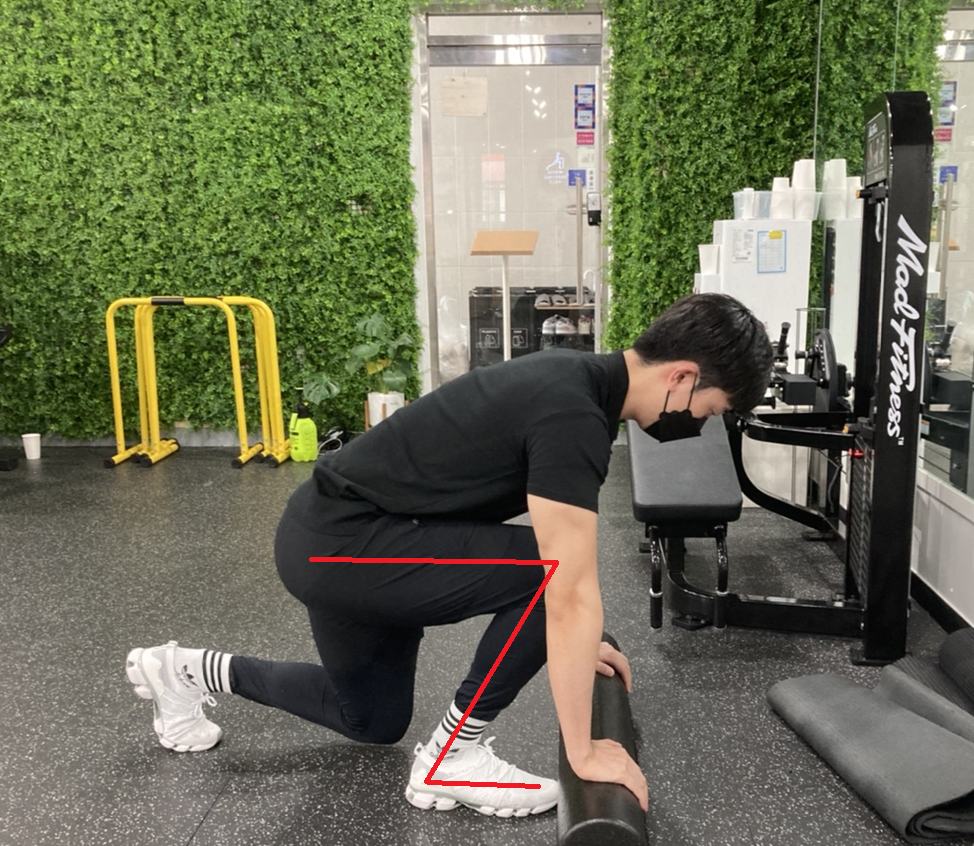 주의 사항으로는 동작이 과하게 빨라서는 안되며, 앞허벅지 근육으로 뒤허벅지 조직들이 늘어나는 느낌으로 선제적으로 열발생을 시켜줍니다.