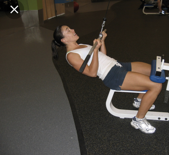 렛 풀 다운(Lat pull down)을 잘못된 자세로 운동하여