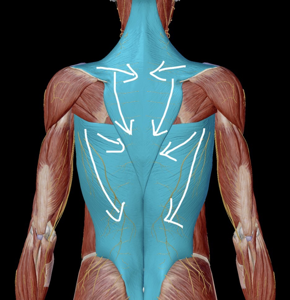 대표적으로 등근육에서 제일 큰 광배근과
