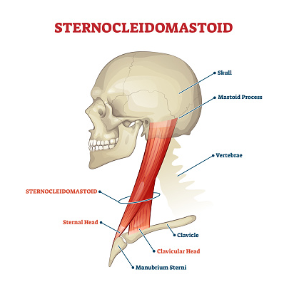 목 주변에서 큰 근육으로는 승모근과 흉쇄유돌근의 상호작용이 중요하며 그 밖에 날개뼈 주변근육으로는 견갑거근, 능형근과 전거근의 상호작용 또한 중요합니다. 추가적으로 소흉근과 대흉근의 몸통을 앞으로 말게만드는 단축성긴장의 힘은 역학적으로 목의 위치를 앞으로 거북목처럼 끌어당기기 때문에 신장성수축을 위한 동작의 운동들이 필요합니다. 뿐만 아니라 움크려진 몸통뼈대는 호흡에 있어서 단축된 긴장성 호흡을 일으키게하여 보조근으로 쓰이는 목에 더 강한 부담을 주기도 합니다.
