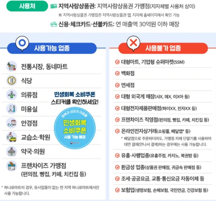 민생지원금은 오직 지정된 가맹점에서만 사용 가능해요.