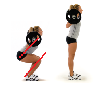 => 둔부에 좀더 집중을 할 것인지, 앞 허벅지(대퇴 사두근)에 좀더 집중을 할 것인지에 따라서 약간의 차이는 있겠지만, 보편적으로 스쿼트 할때 시상면(옆면)에서는 정강이 뼈와 상체의 기울기가 같아야 합니다.