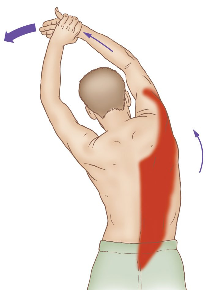 스트레칭하고자 하는 근육이 있는 팔을 위로 쭉 뻗은후