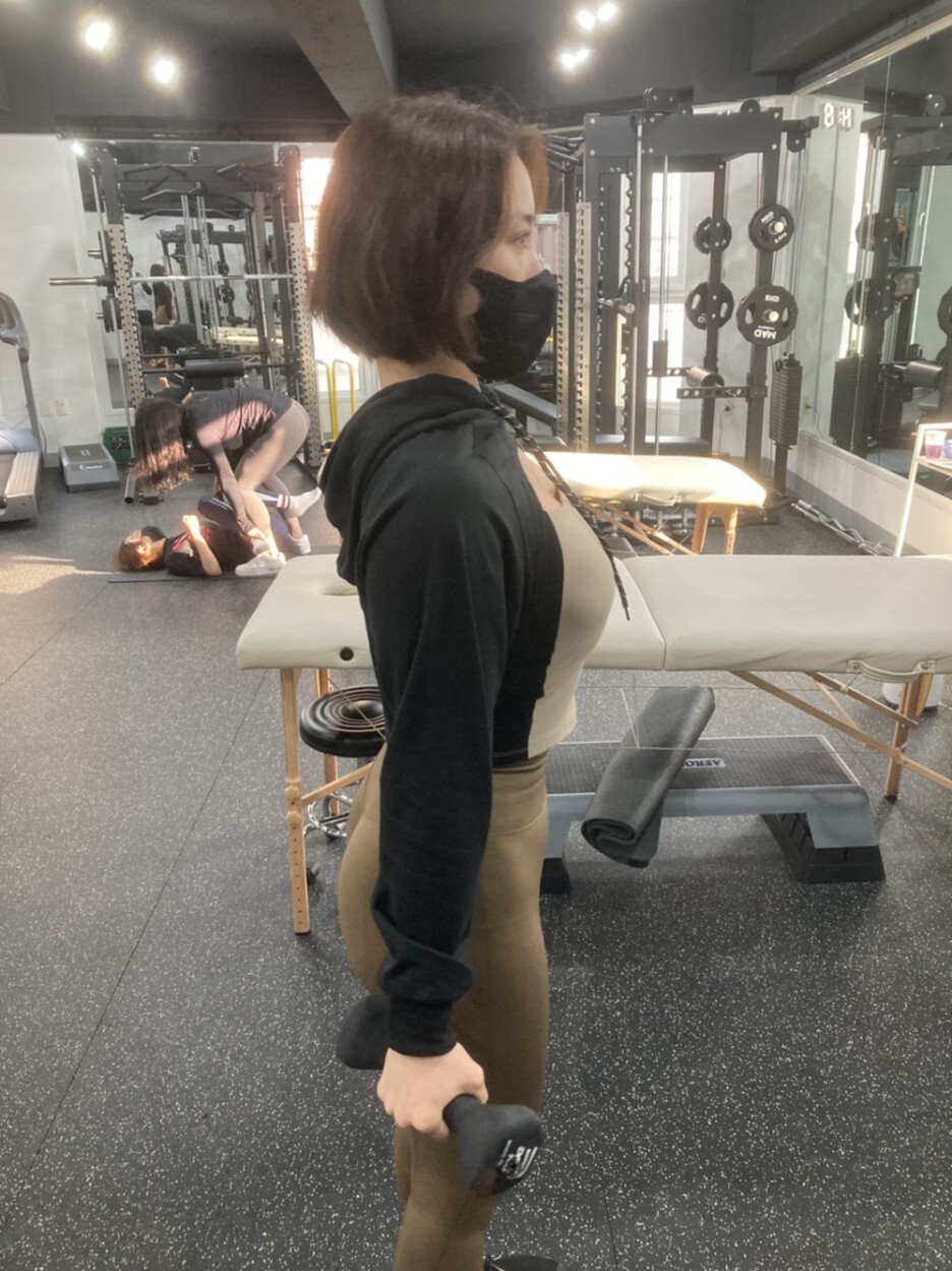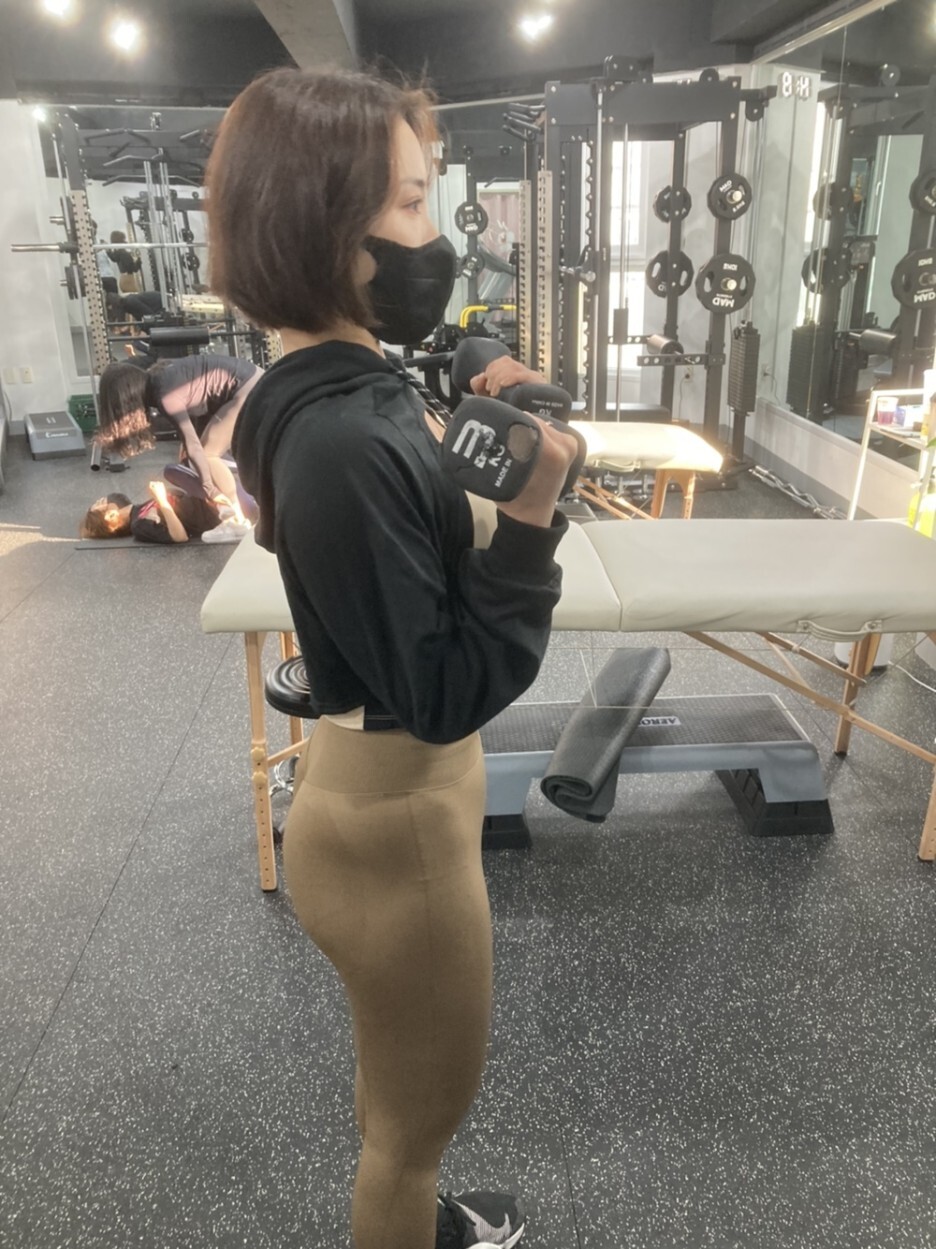 전 세트에서 이두근 운동을 먼저 하여 팔꿉관절의 안정성을 확보후 진행하였다.