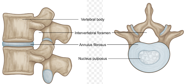 -> 경추(목뼈), 흉추(등뼈), 요추(허리뼈), 천추(엉치뼈) 사이에 척추 분절사이에 충격 완충작용을 하며, 기차와 기차 사이에 연결되어 있는 접합부처럼 움직임을 좀 더 잘 할수있게 말캉말캉한 성질로 되어있는 조직입니다. 척추뼈 뿐만 아니라, 다른 관절 부위에도 디스크(추간판)가 존재하는데, 대표적으로 쇄골과 턱관절에도 존재합니다.
