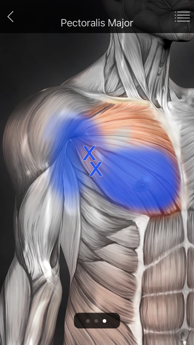 - 대흉근의 TP는 통증이 없는 잠재적인 상태이더라도 견갑골 내전근(중부승모근, 능형근)에 통증을 유발할 수 있을 만큼 무리를 줄 수 있어서 견갑골 내전을 제한하게 된다.