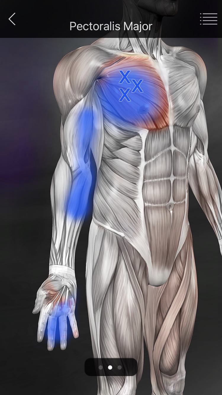 - 대흉근의 TP는 통증이 없는 잠재적인 상태이더라도 견갑골 내전근(중부승모근, 능형근)에 통증을 유발할 수 있을 만큼 무리를 줄 수 있어서 견갑골 내전을 제한하게 된다.