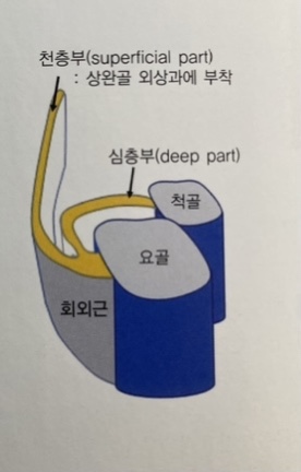 ※ 회외근은 테니스엘보(Tennis elbow)에서 가장 중요한 근육이다.