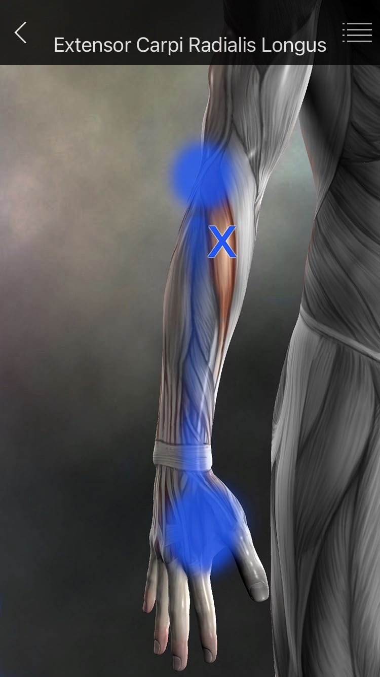 장요측수근신근(Extensor carpi radialis longus) - ECRL 기시점(Origin) : 상완골 외측상연의 원위 1/3 정지점(Insertion) : 제2중수골(2nd Metacarpal)의 기저부 후면 신경지배 (Innervation) : 요골신경(Radial nerve) 근육의 기능 (Function of muslce) - 완관절의 신전(Wrist extension) - 완관절의 외전(Radial deviation) - 주관절의 굴곡 보조 (Elbow flexion) |