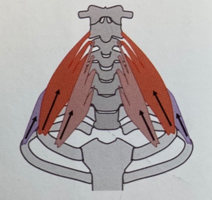 - 늑골의 종지부가 고정된 상태에서 양쪽 사각근이 수축하면 경추가 전굴 된다. | |