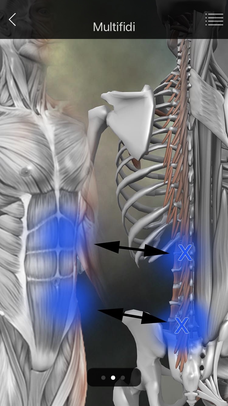 => 다열근과 회전근은 아래쪽으로 요추(Lumbar))와 천추(Sacrum)의 연결부를 지나, 천추의 다열근삼각(Multifidus triangle)을 채우고, 표층부에 있는 최장근(Longissimus)과 장늑근(Iliocostalis)의 건성연장에 의해 덮여지는 서로 구별이 어려운 근육이다.