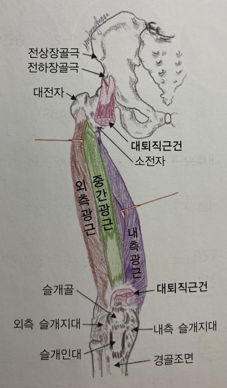 - 기시부(Origin) : 대퇴골 상부 2/3의 전면과 외측면