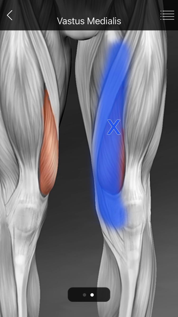 - 정지부(Insertion) : 대퇴사두근건의 내측, 슬개골 기저부 내측으로 내측슬개지대를 형성