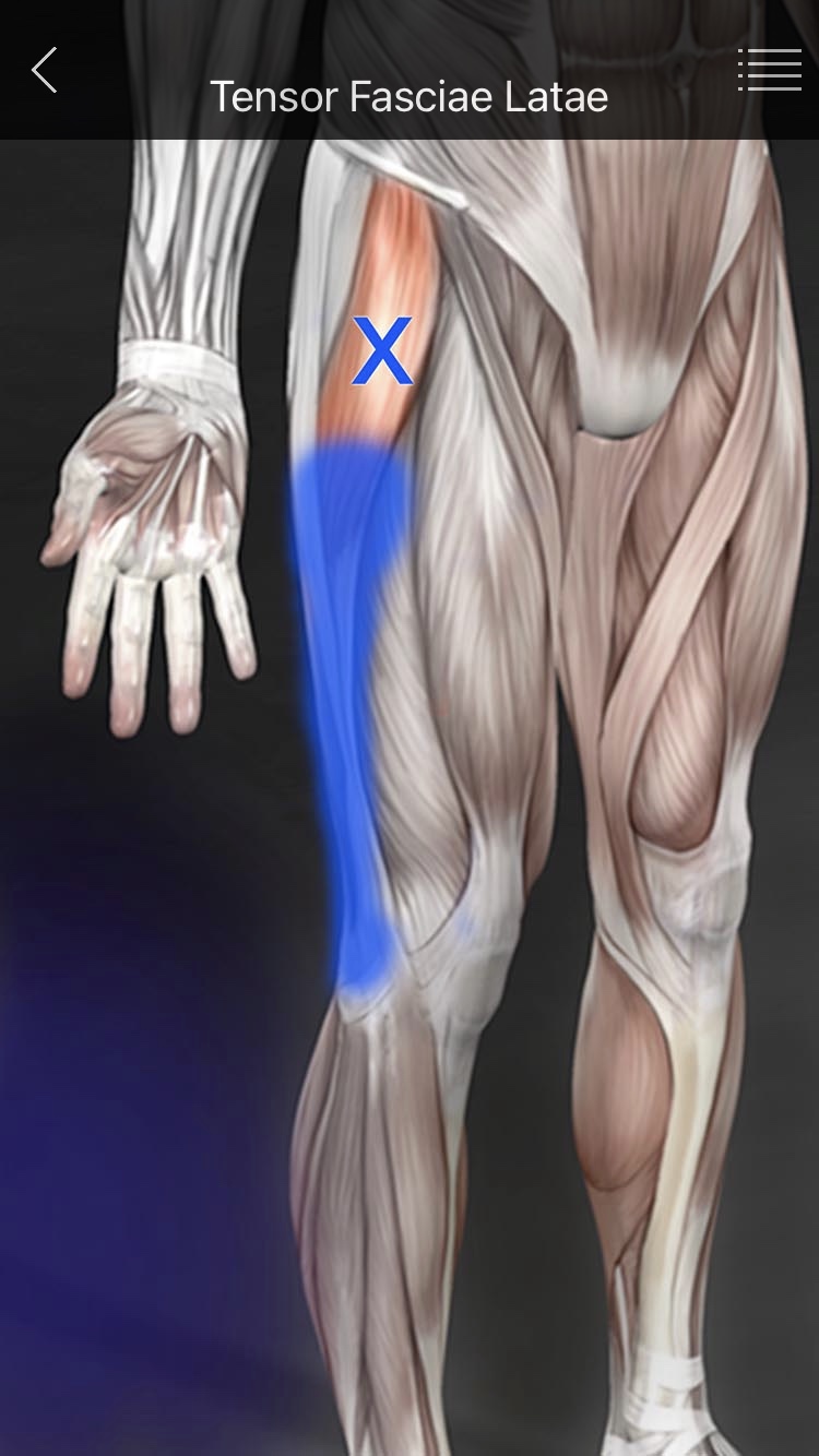 => 대퇴근막장근에 문제가 생기면 허리통증과 더불어 무릎의 외측으로 통증이 같이 생길 수 있다. 특히, 장거리 달리기를 하고난 후에 대퇴근막장근의 이상이 많이 나타난다.