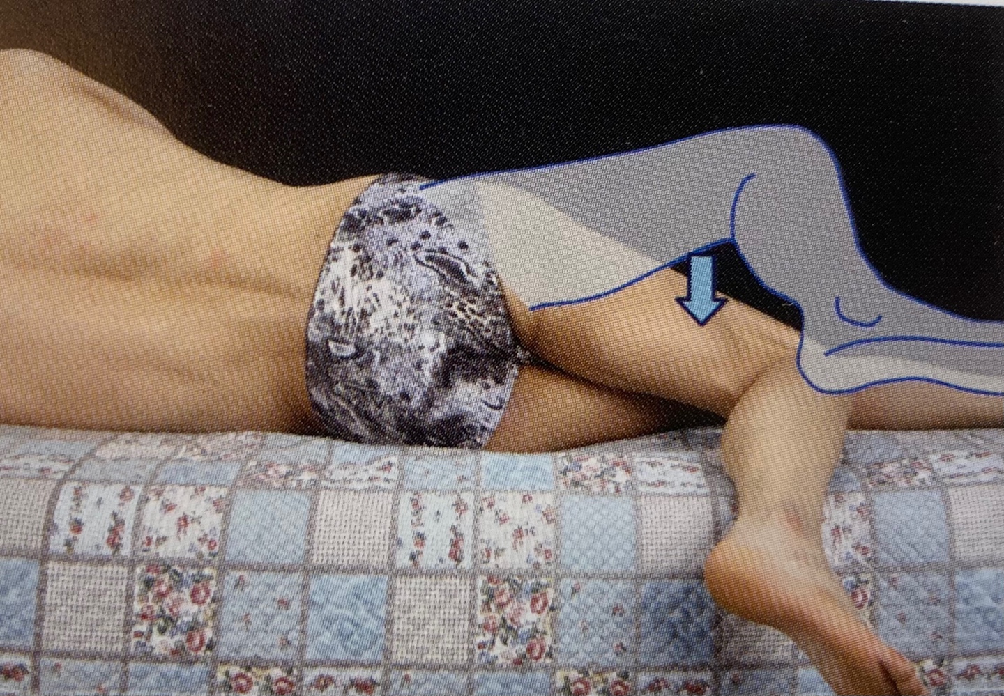 - 환측을 위로 하여 측와위로 누우면 장경인대의 긴장으로 통증이 생긴다.