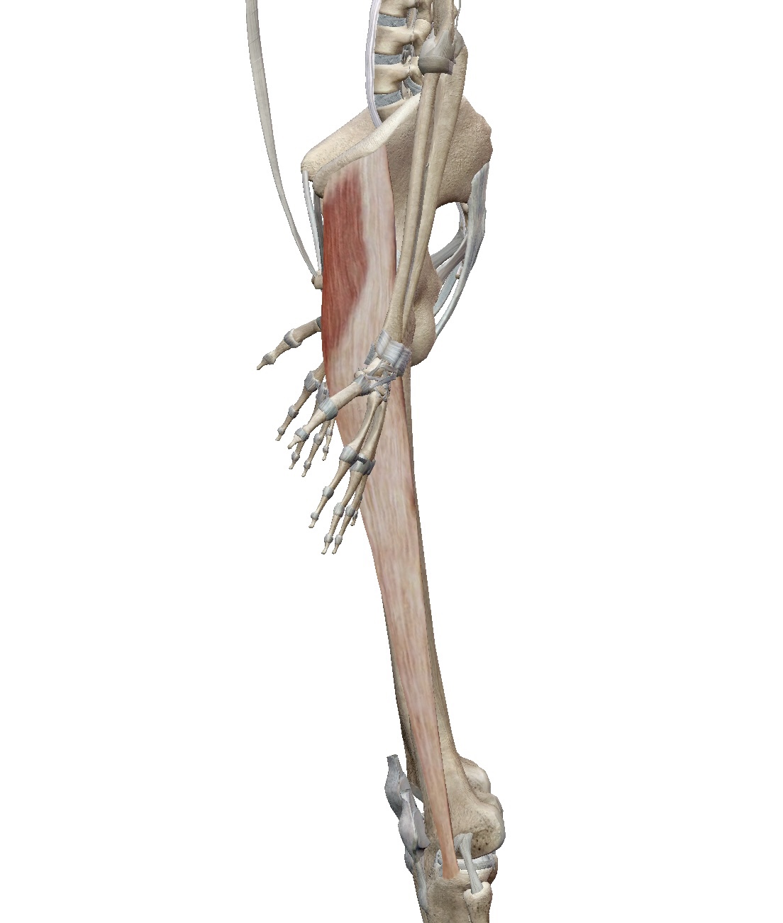 ⓑ 보행시 입각기(Stance phase) 동안 (중둔근 과 소둔근을 도와주면서) 골반을 안정화시키며 무릎 안정화에도 작용한다.