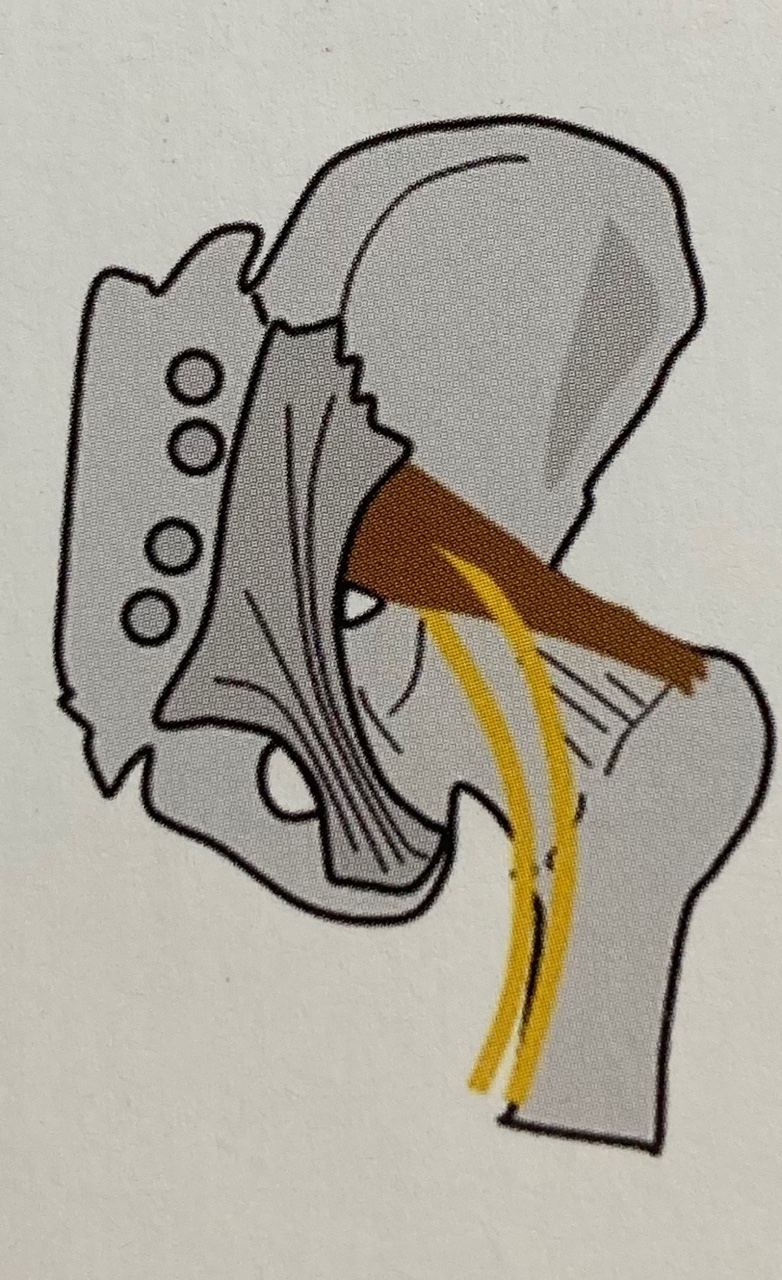 이상근(Pirifomis) [기시점] - 천골의 전면 - 철골결절인대의 골반면 [정지점] - 대퇴 대전자 상연의 내측 [작용] - 고관절 외회전, 신전 보조 [신경지배] S1, S2 |