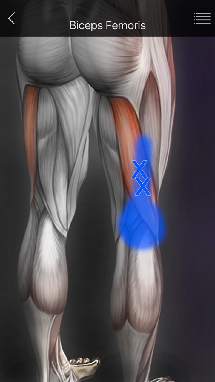 기시점(Oring) - 좌골결절(Ischial tuberosity)의 후면부 정지점(Insertion) - 비골두의 측면부 작용(Action) - 고관절 신전(Hip extension) - 슬관절 굴곡(Knee flexion) - 슬관절 외회전(90도 굴곡시) (Knee lateral rotation)(On knee 90 flexion) 신경지배(Innervation) : 좌골신경의 경골신경(Sciatic-tibia nerve) |
