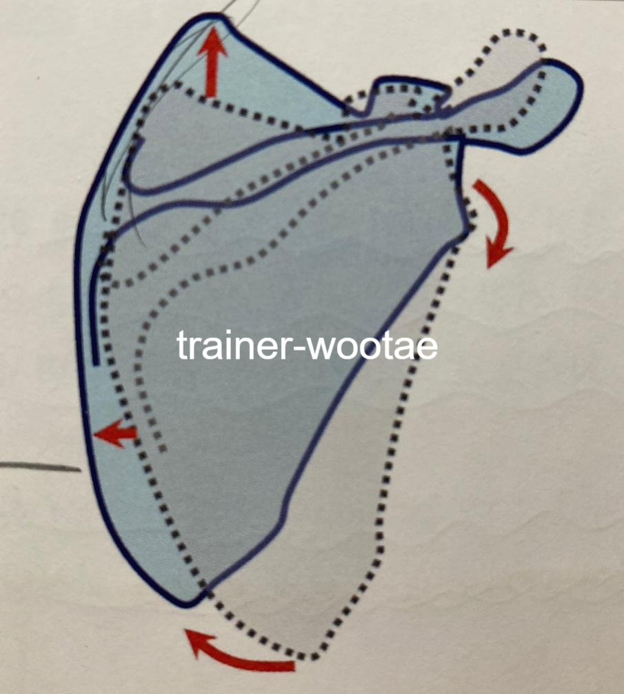- 견갑골이 회전하여 견관절와(Glenoid fossa)가 아래로 향하고, 견갑골이 전체적으로 상승한다.