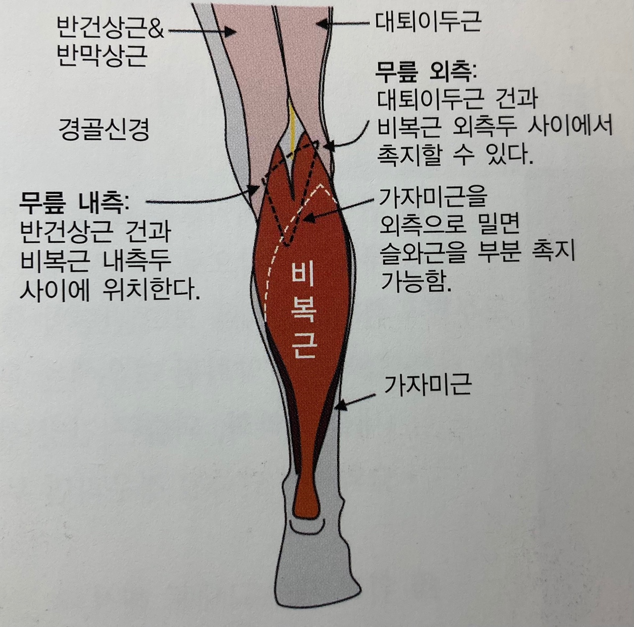 => 슬와근(Popliteus), 내측 햄스트링(Medial hamstring), 봉공근(Sartorius), 박근(Gracilis)