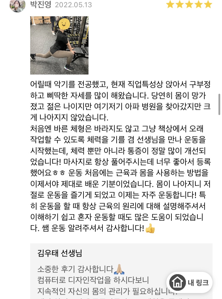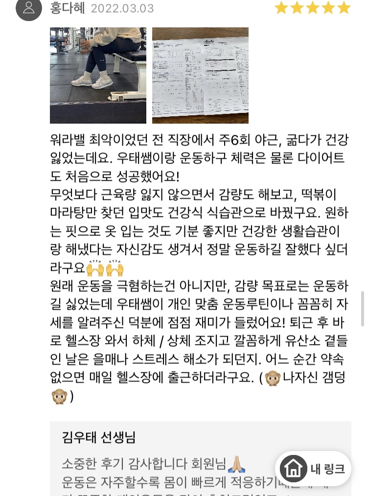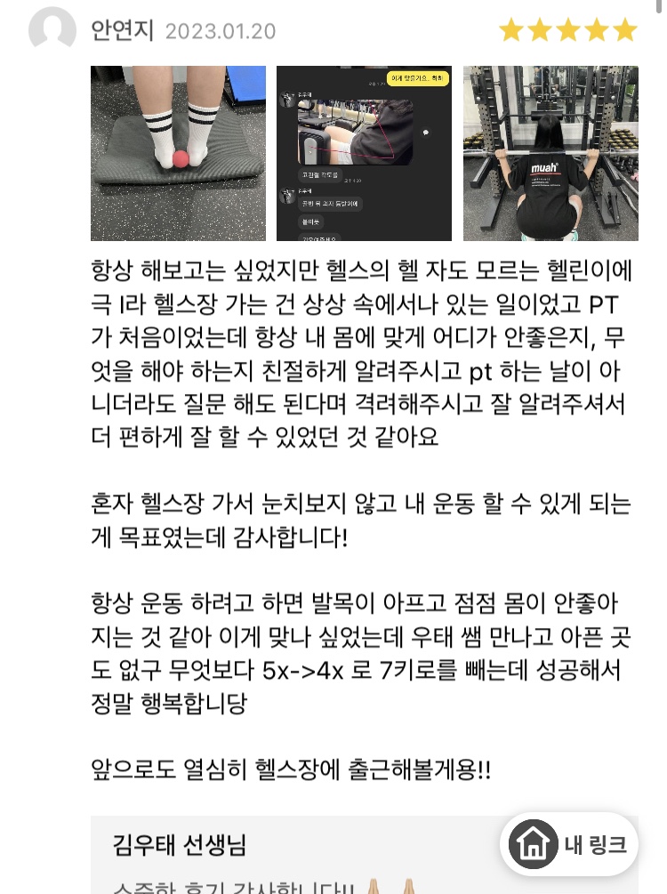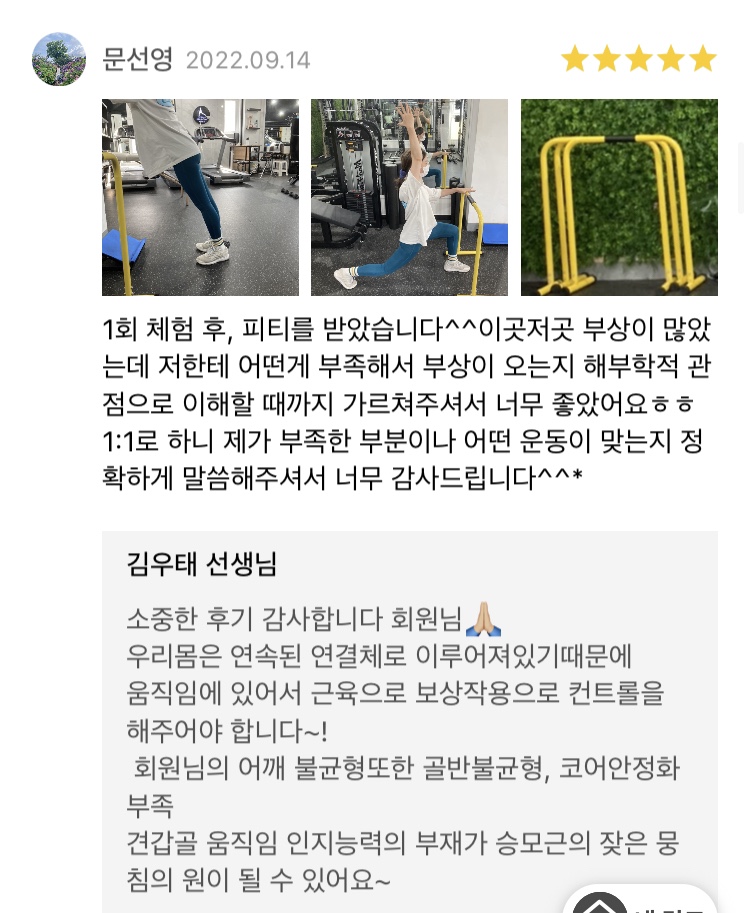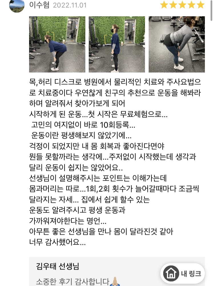 오늘은 운동닥터에 게시된 제 PT후기를 공개해보려 합니다!!