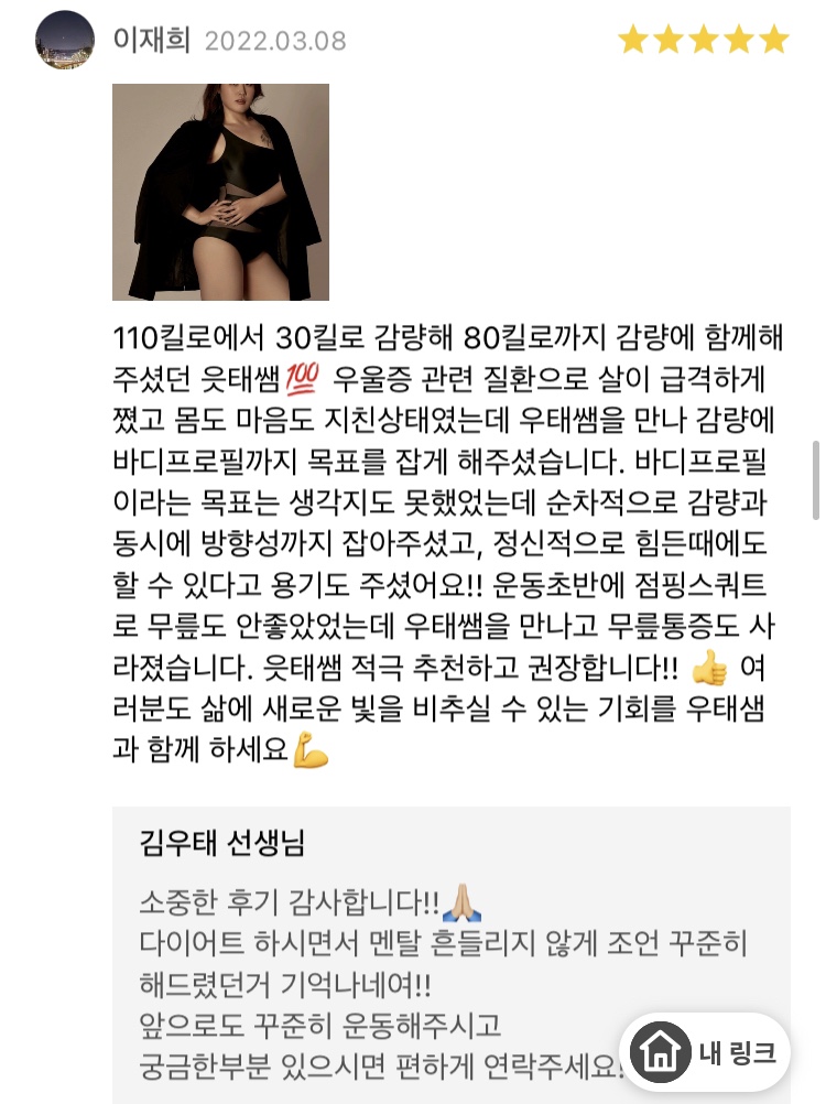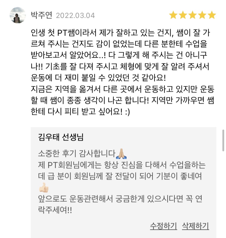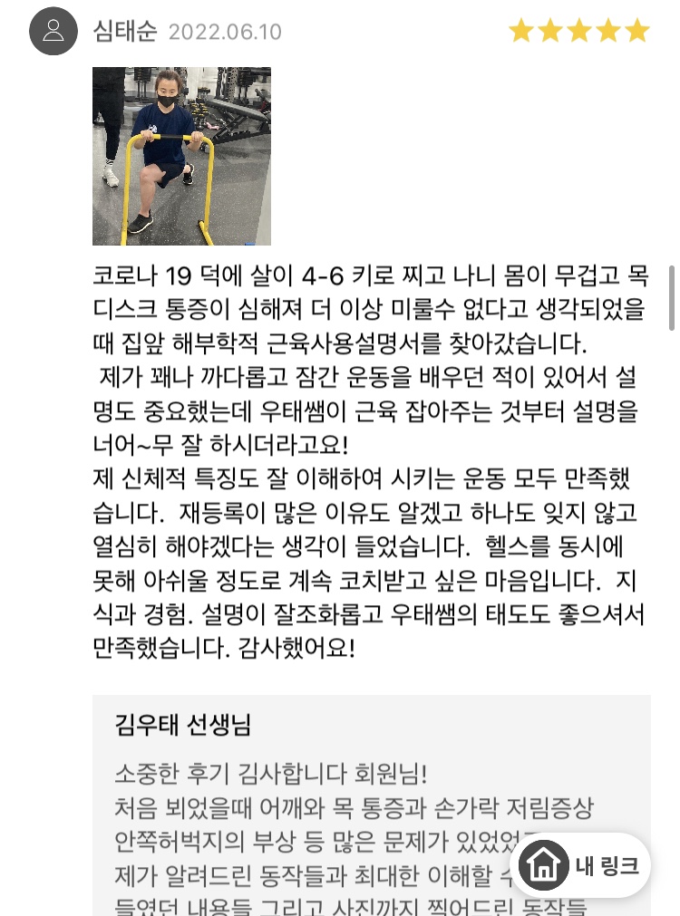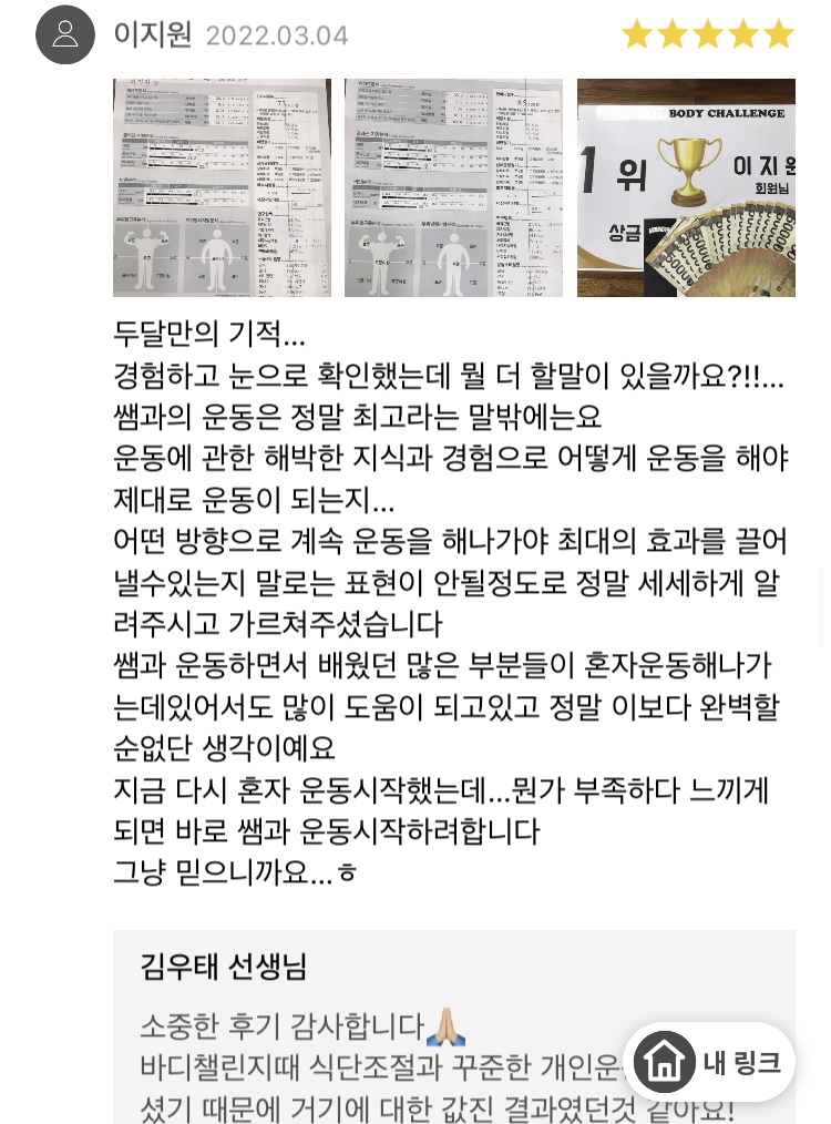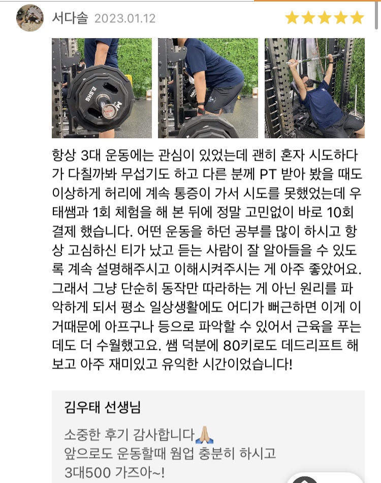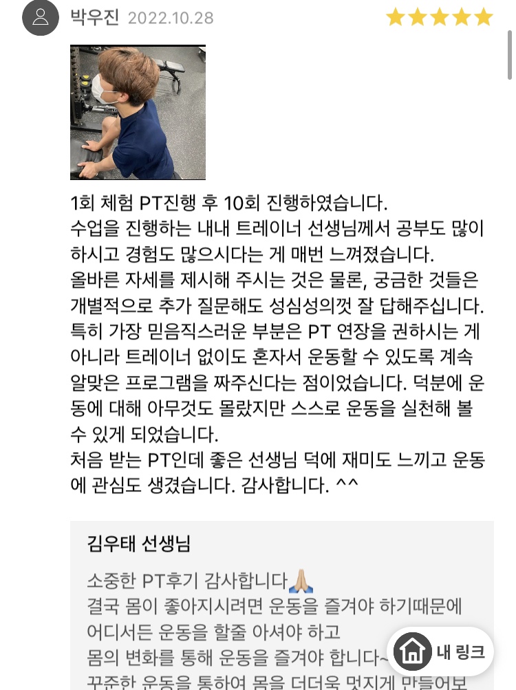 오늘은 운동닥터에 게시된 제 PT후기를 공개해보려 합니다!!